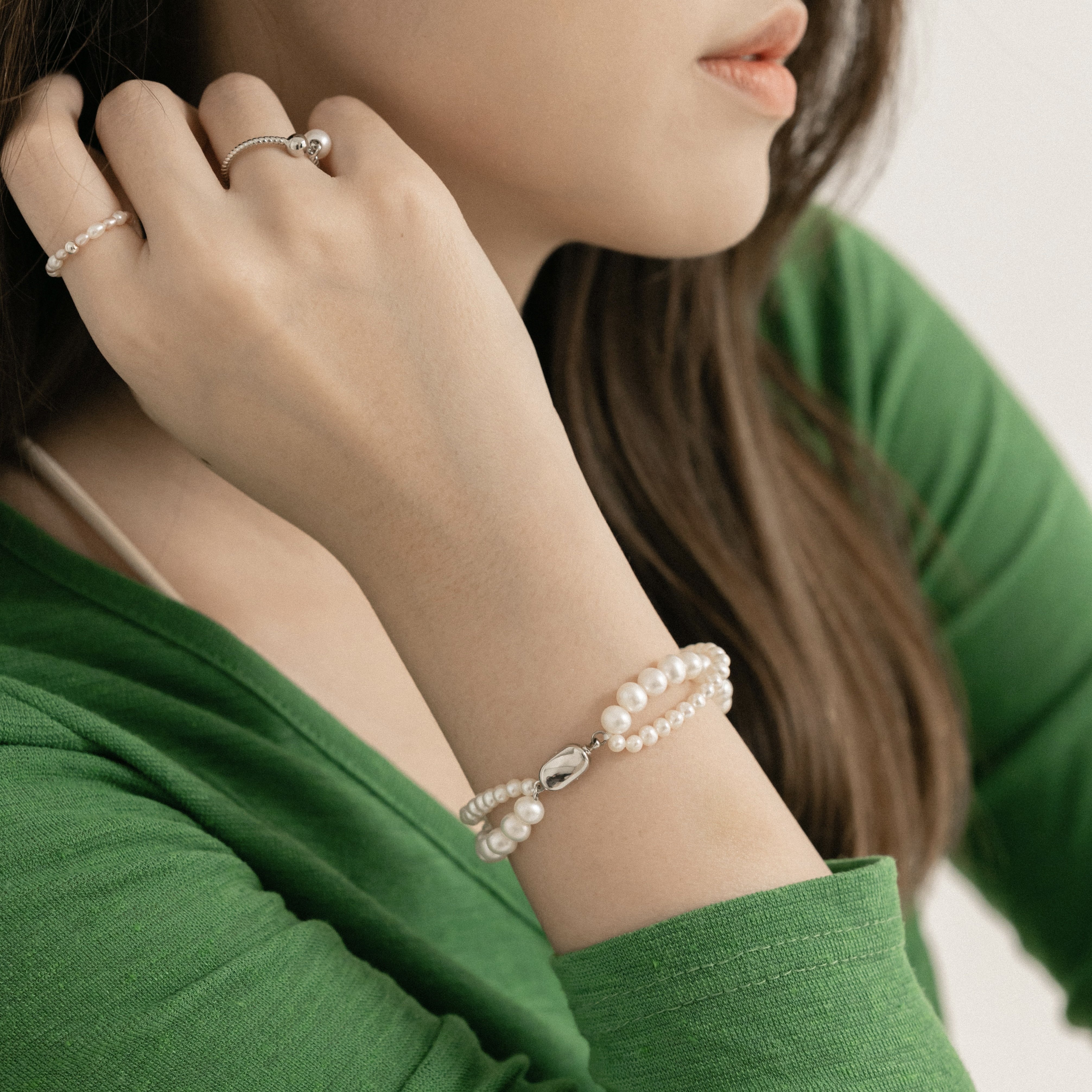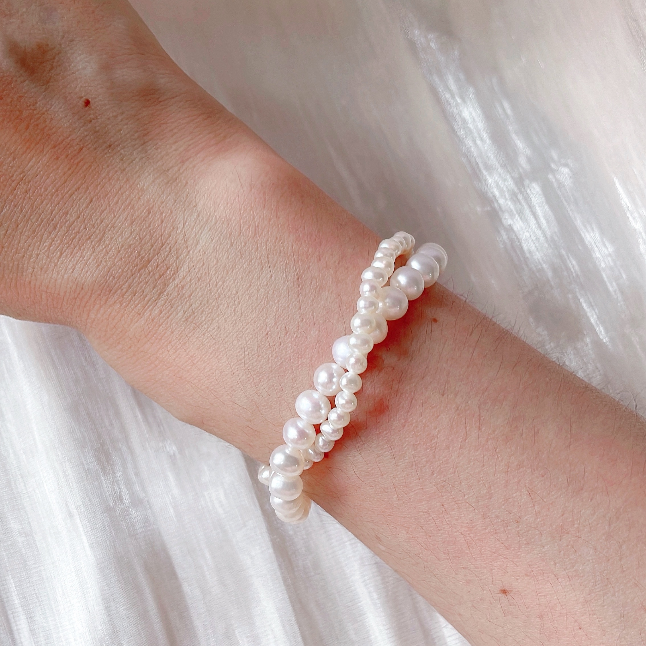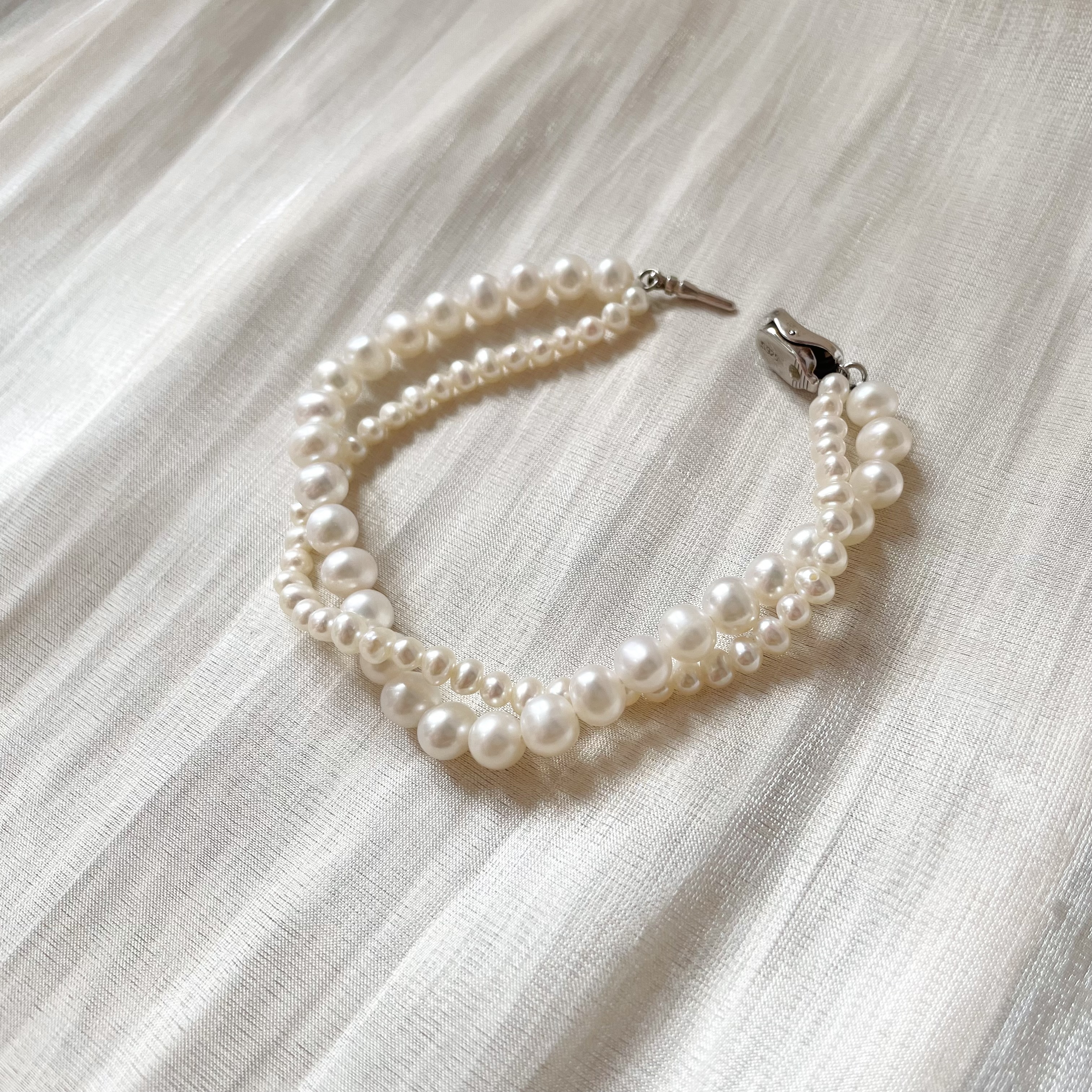 以兩種不同大小的珍珠交錯設計,展現自然的層次美感。