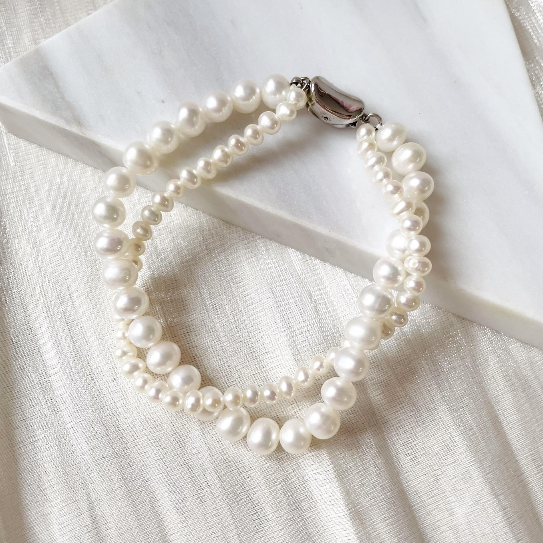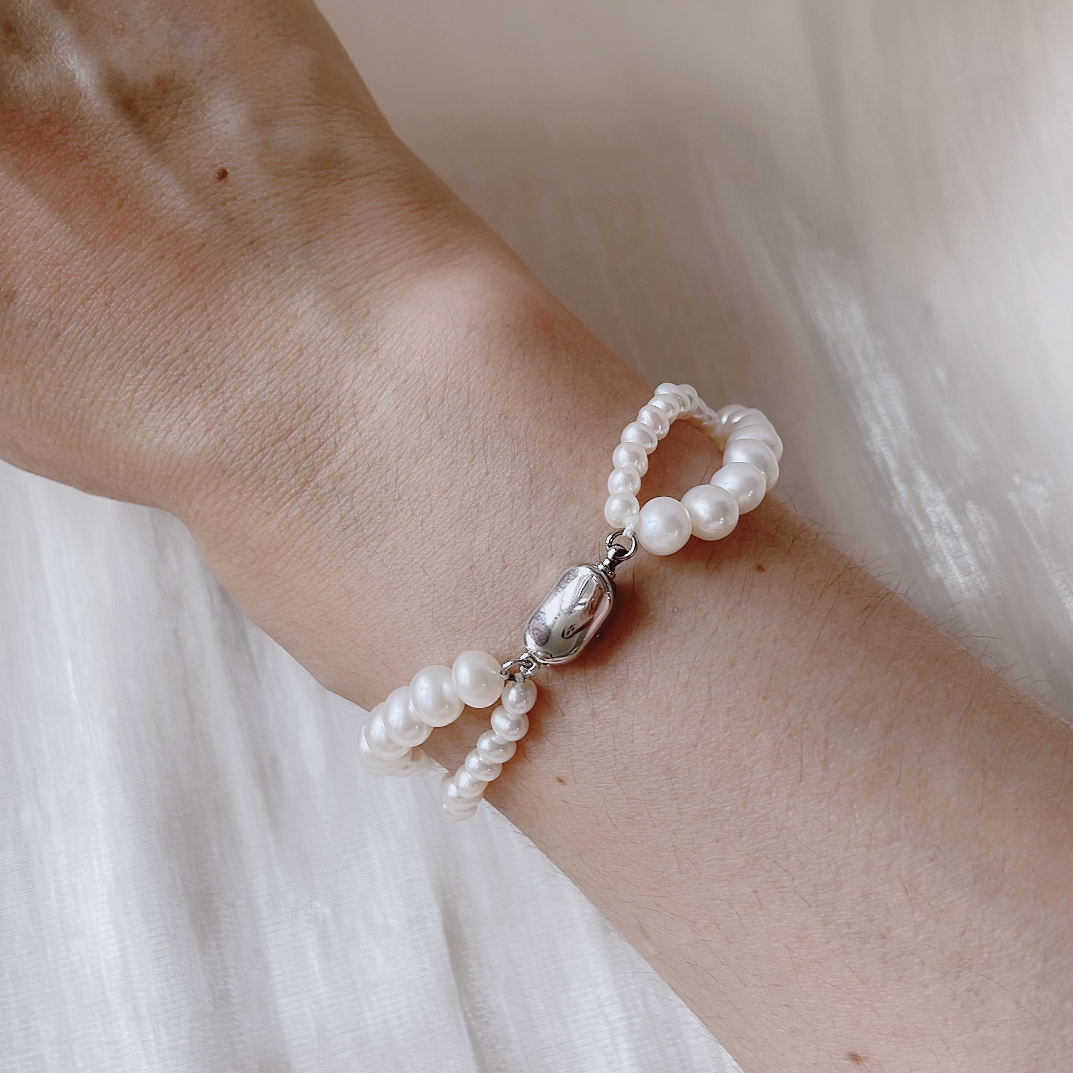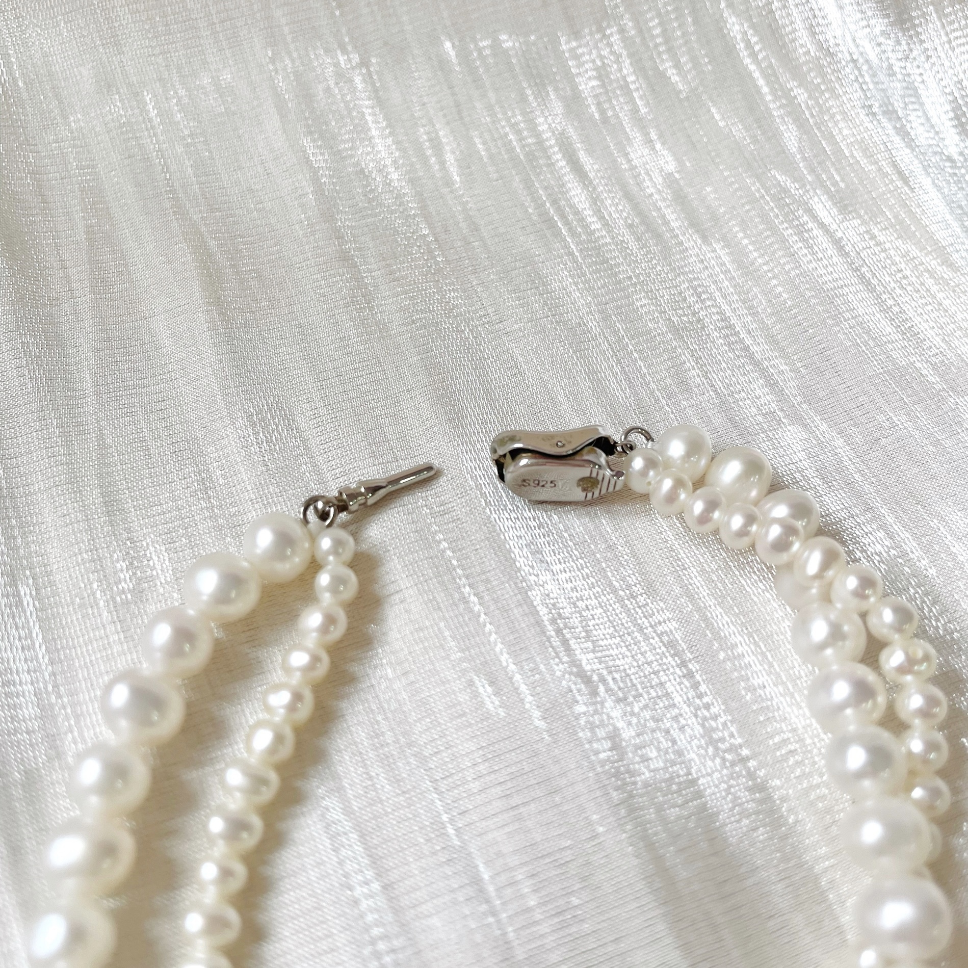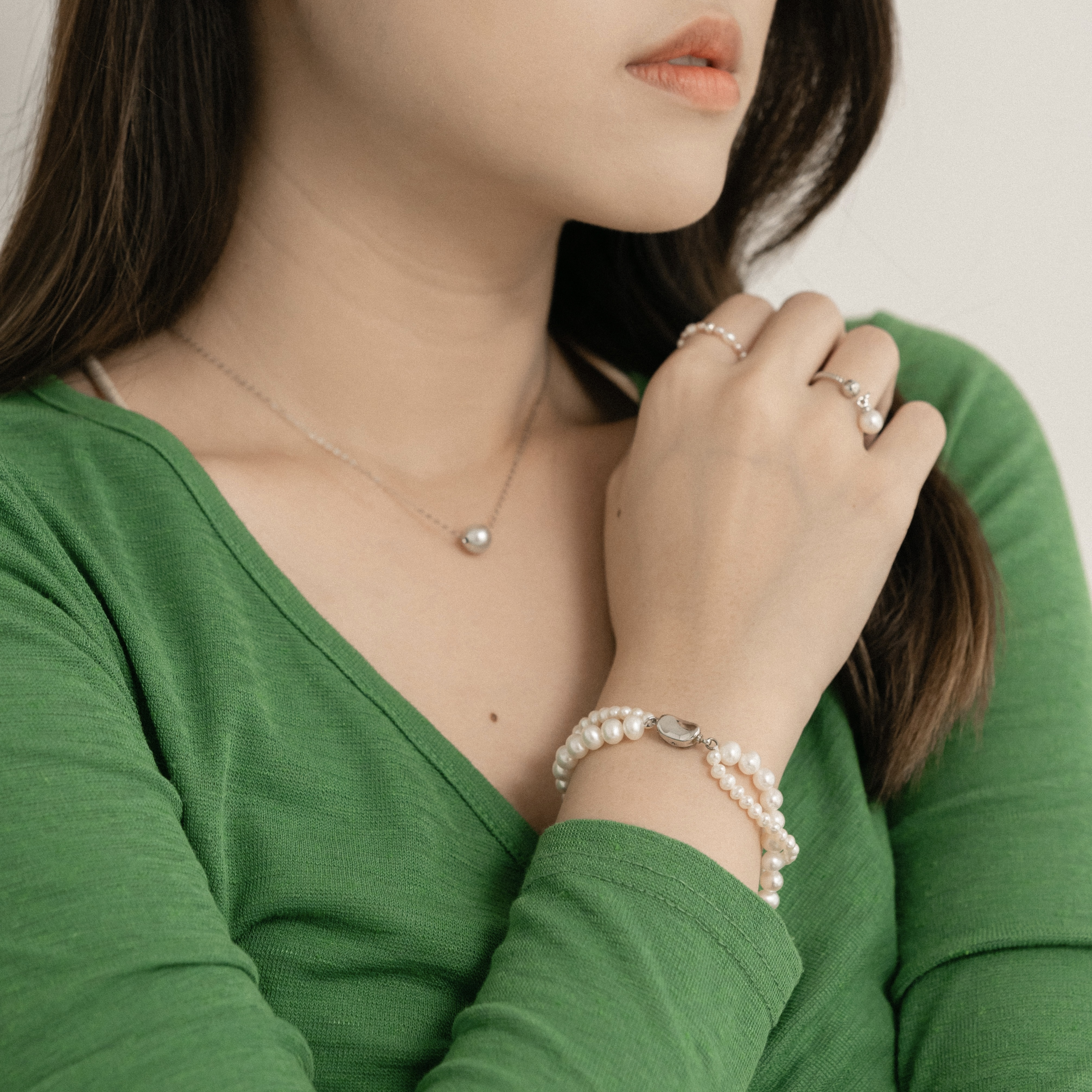 以兩種不同大小的珍珠交錯設計,展現自然的層次美感。