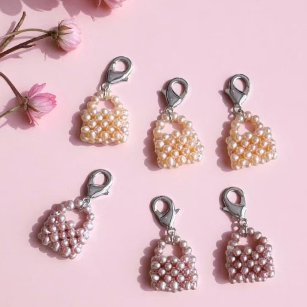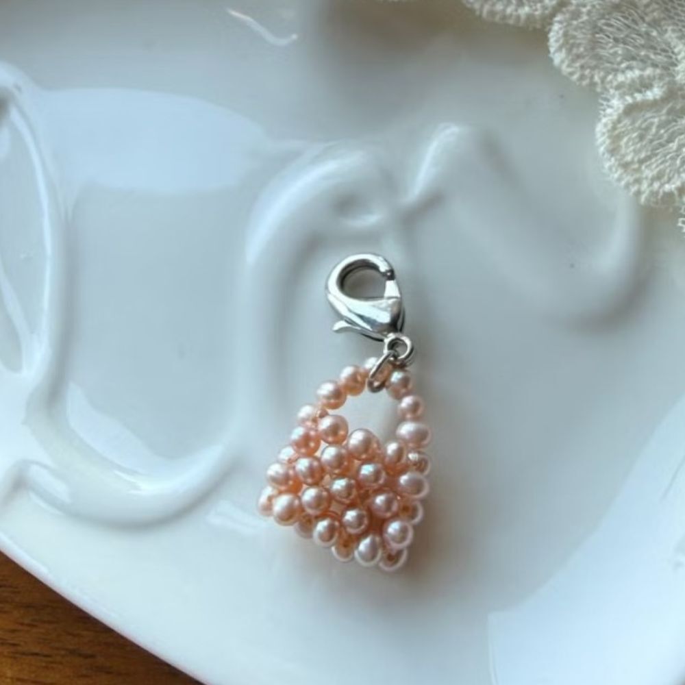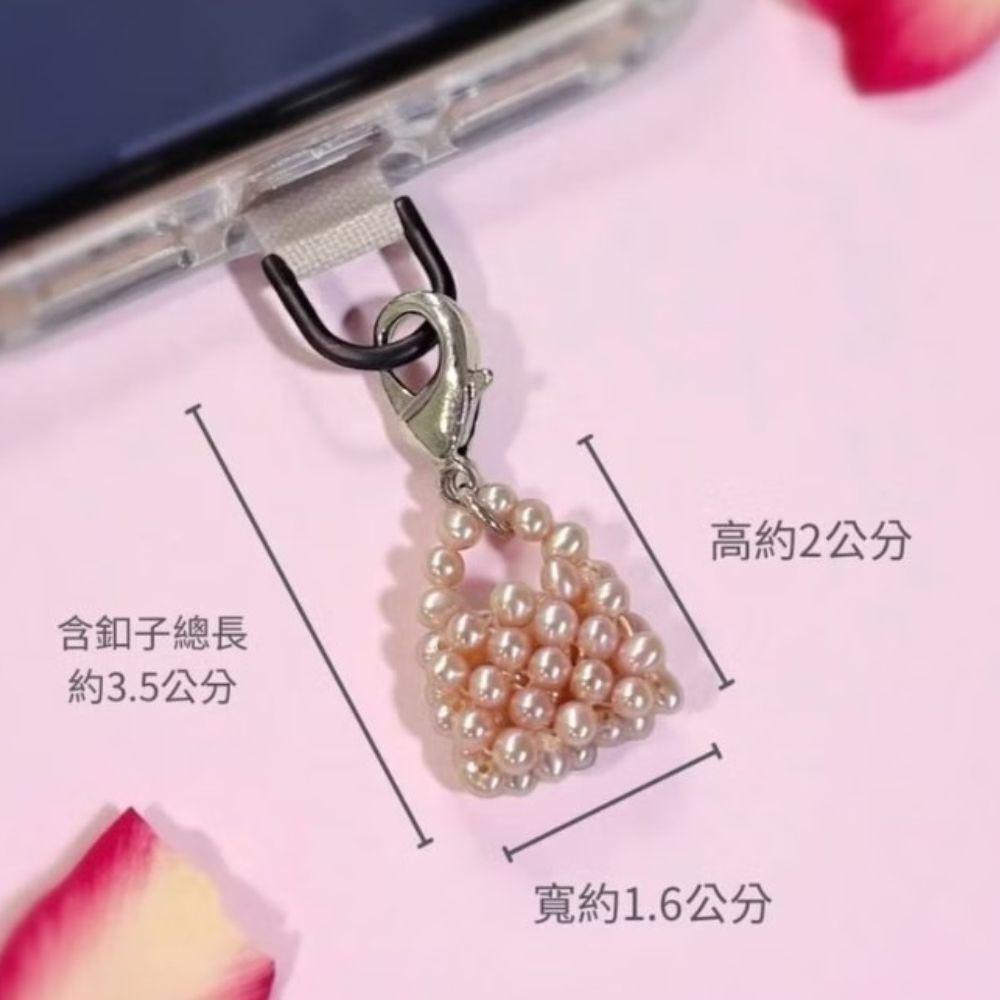 以迷你天然珍珠手工編織製作的立體小錢包造型,