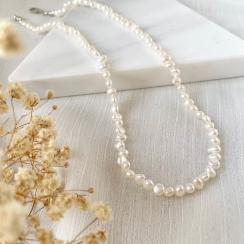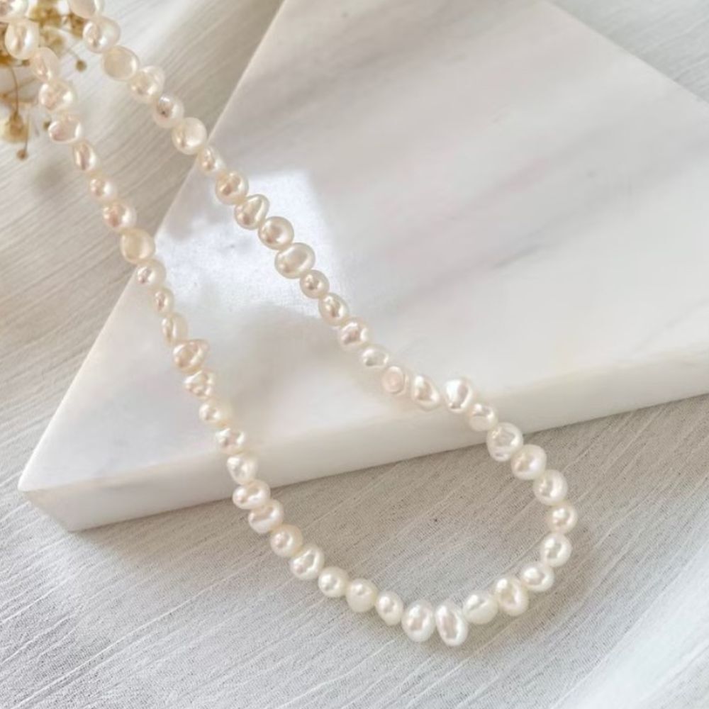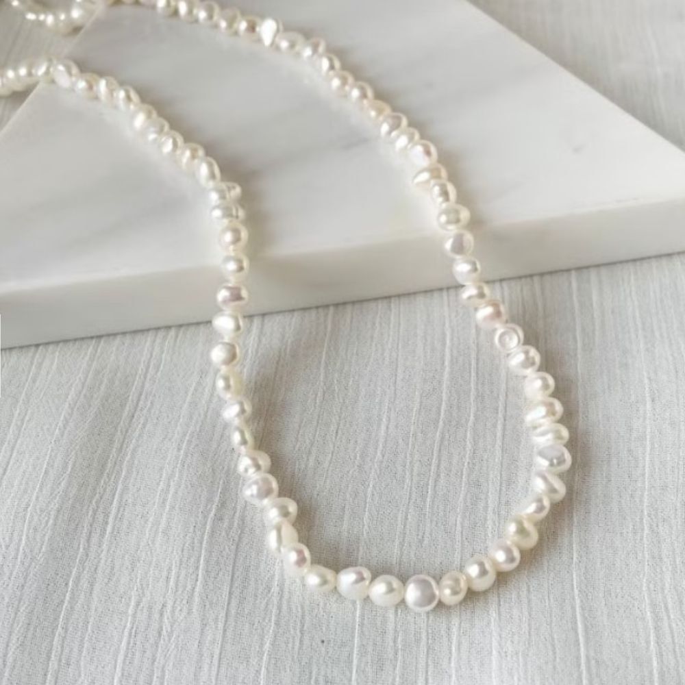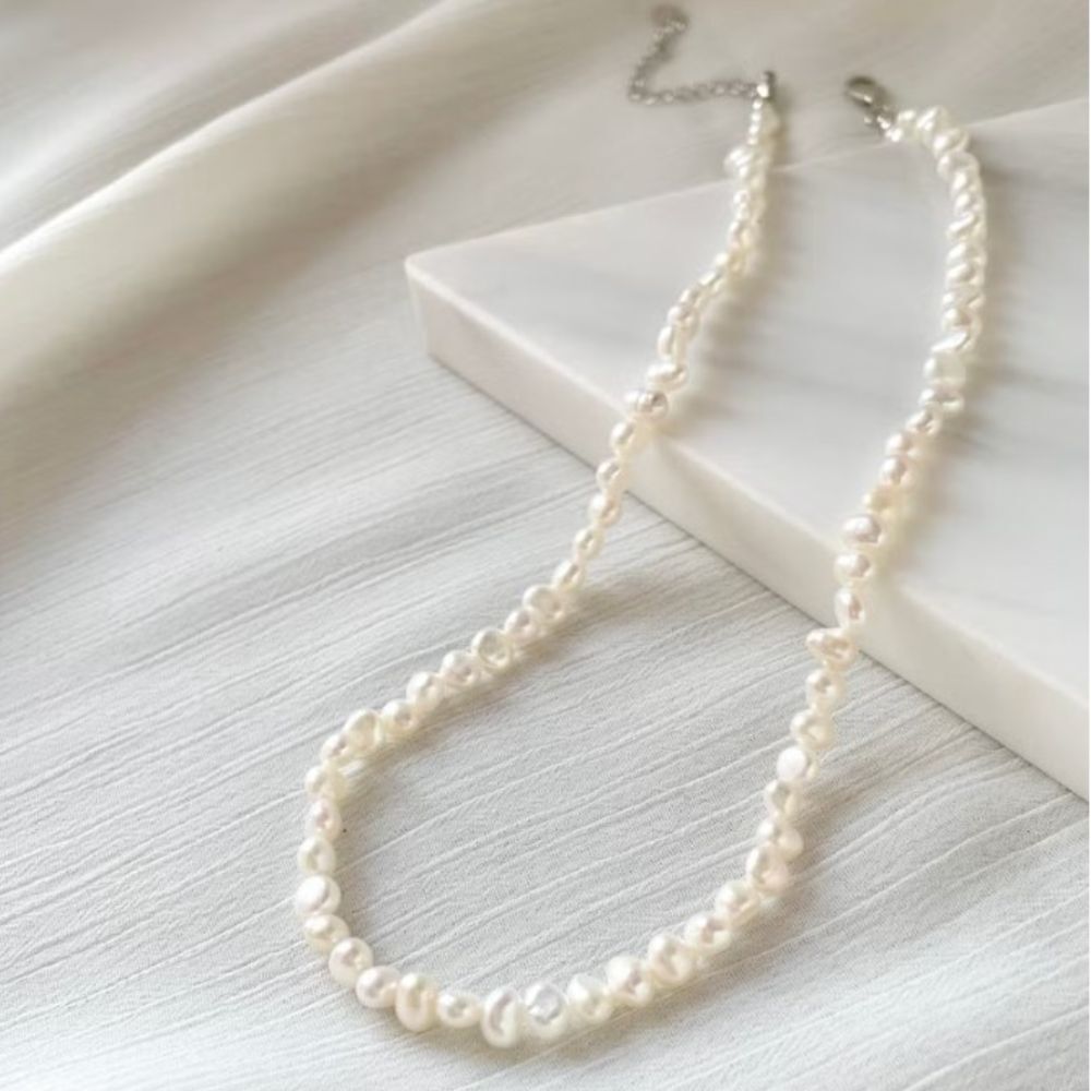 優質不規則淡水小珍珠約4-5mm,素雅清新卻也是俏麗百搭的珍珠頸項鍊。