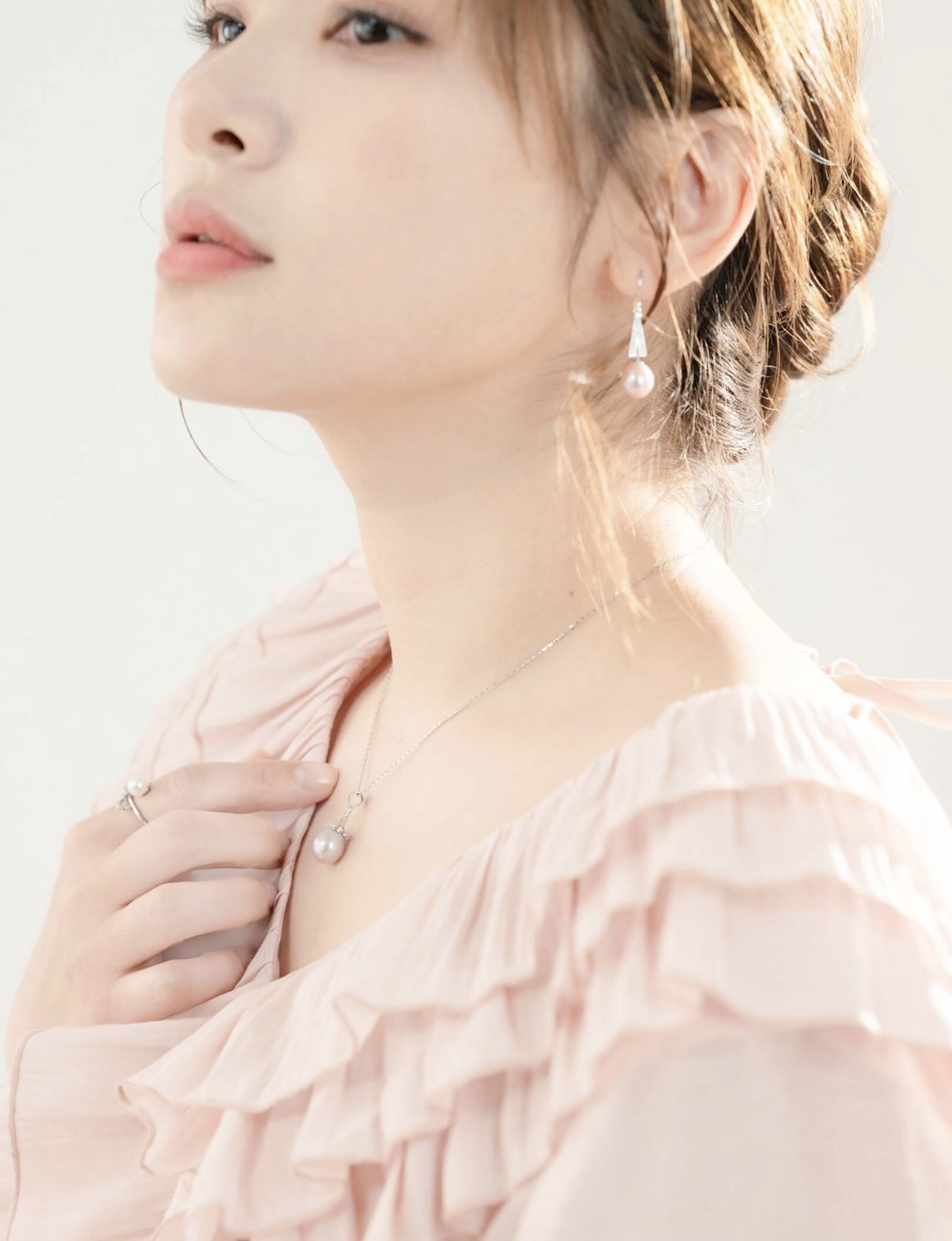 優雅裙襬造型鑲在夢幻迷人的水滴珍珠上,彷彿跳著芭蕾舞的身姿,如此柔美輕盈。
