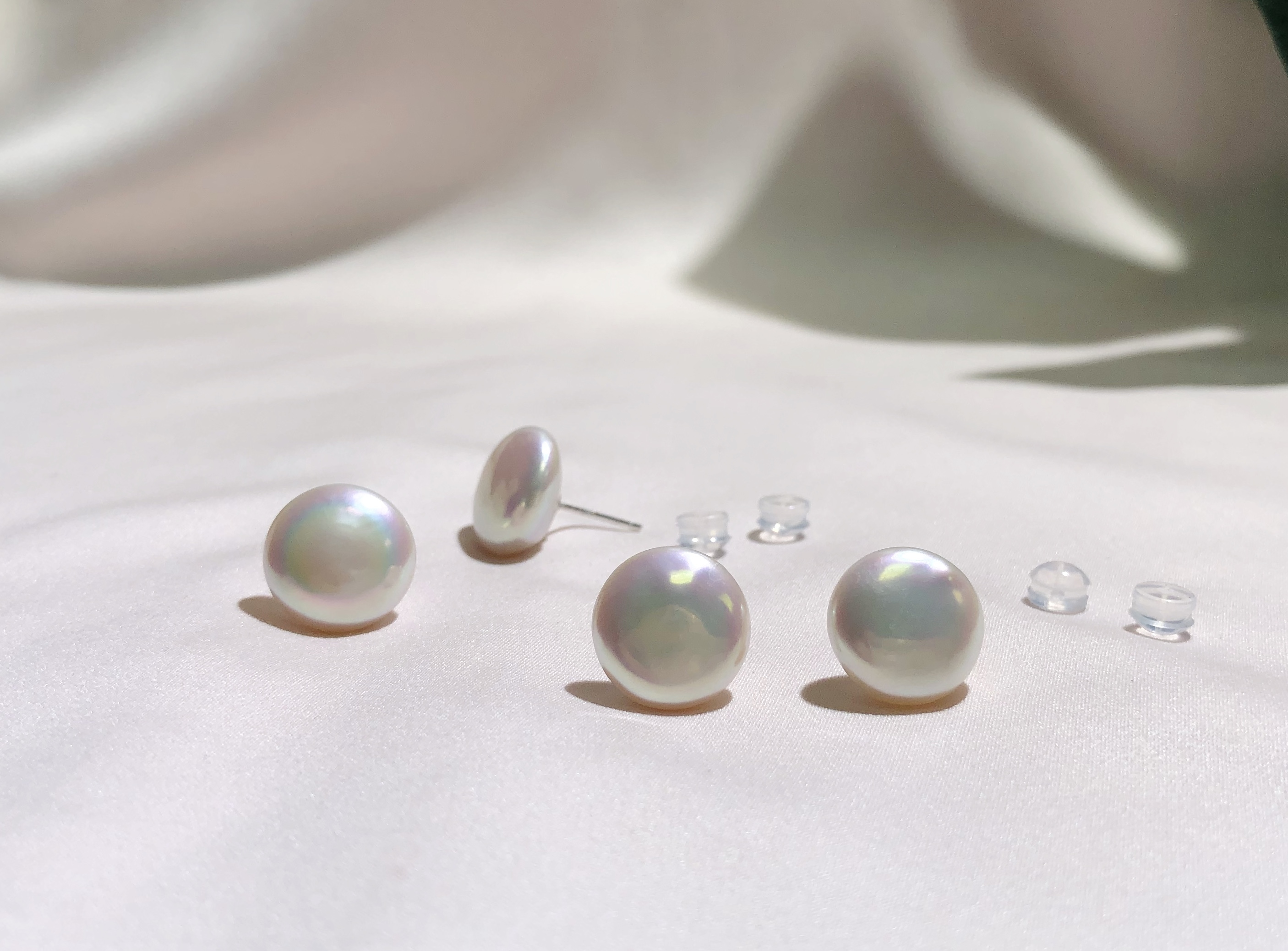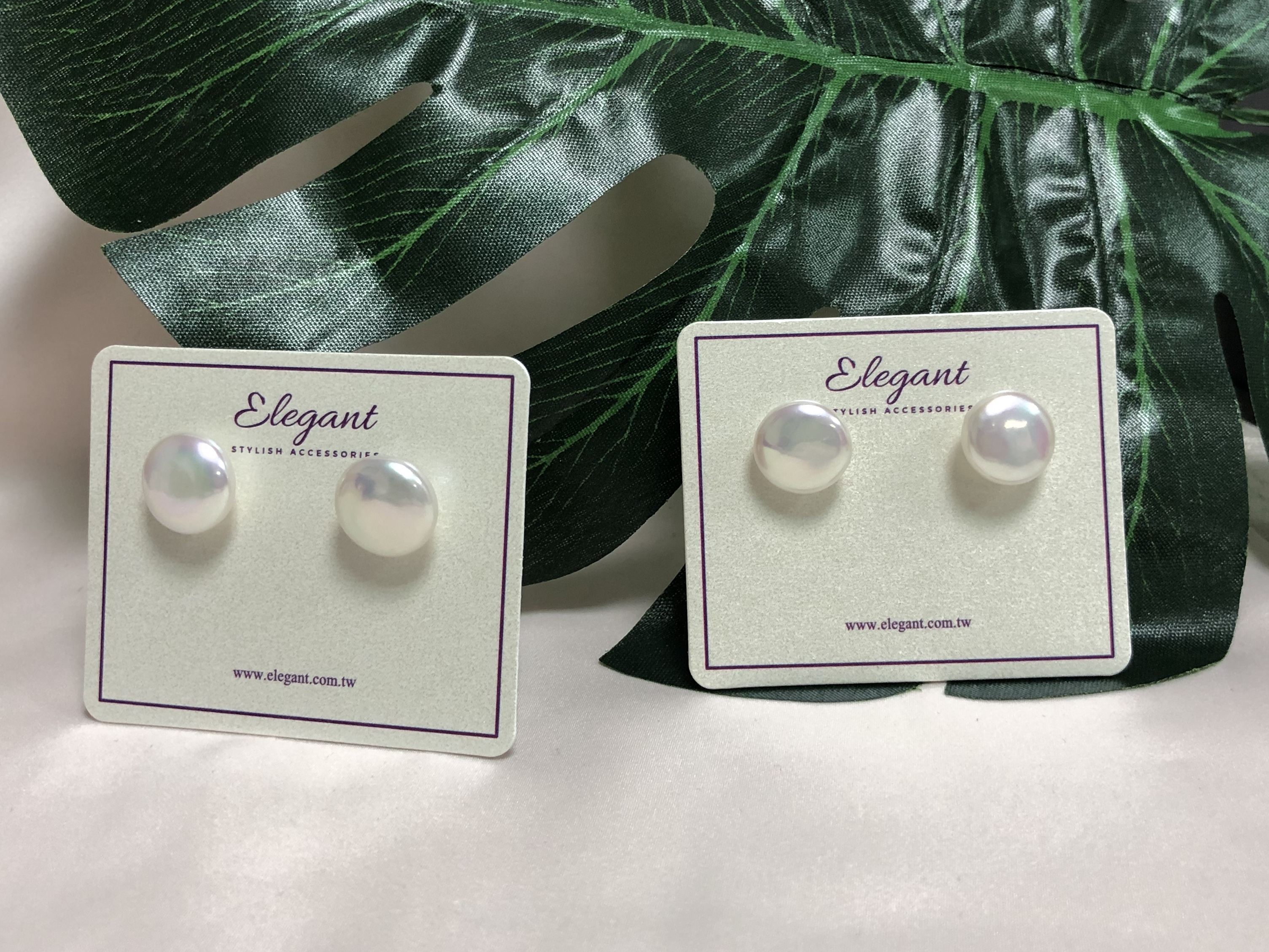 S925純銀針,天然巴洛克鈕扣形珍珠 12-13mm |