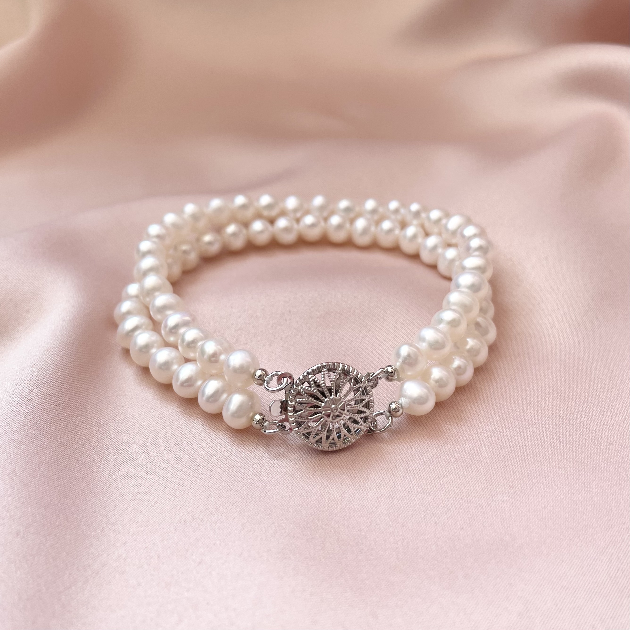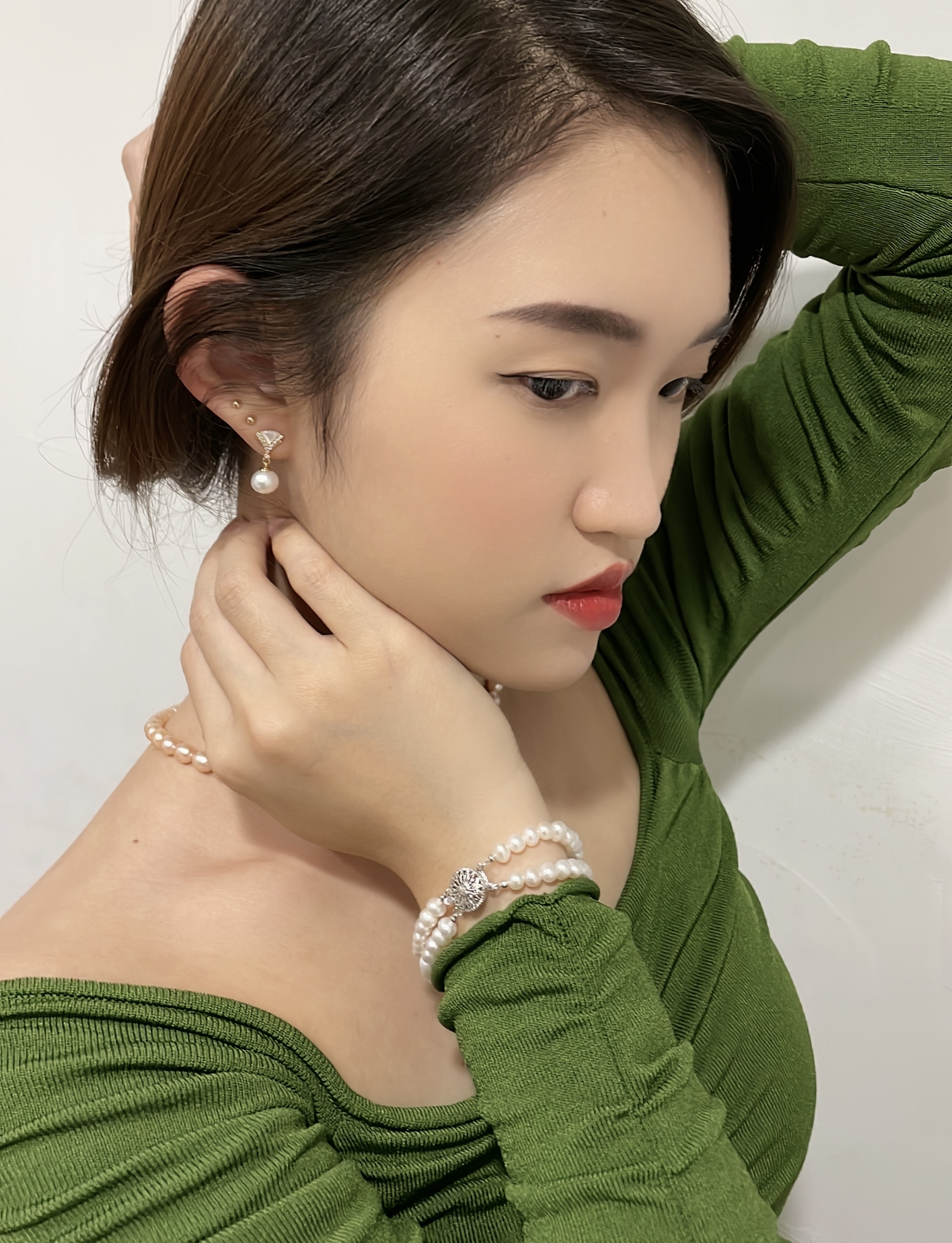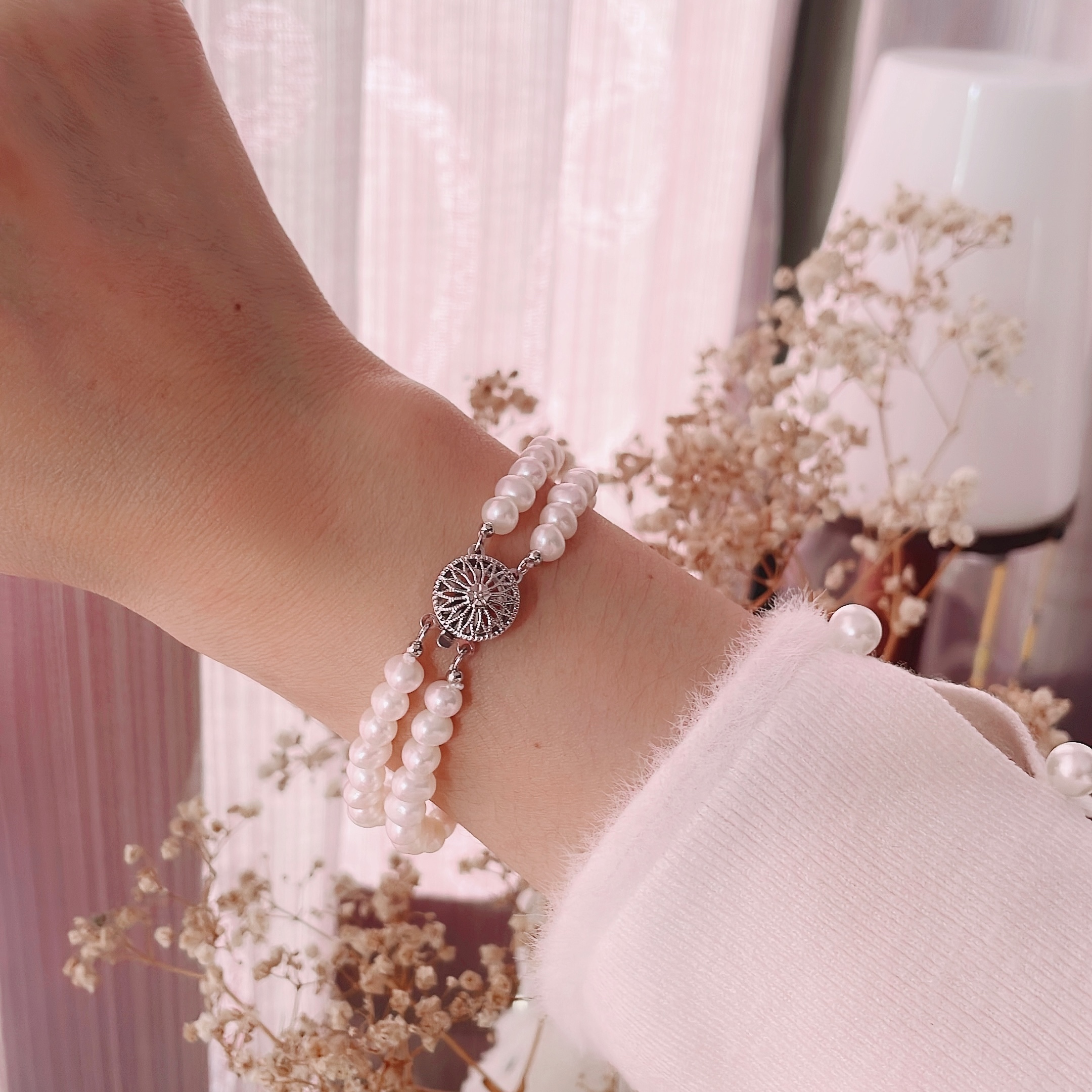 天然淡水優質珍珠搭配復古鏤空星芒銀釦