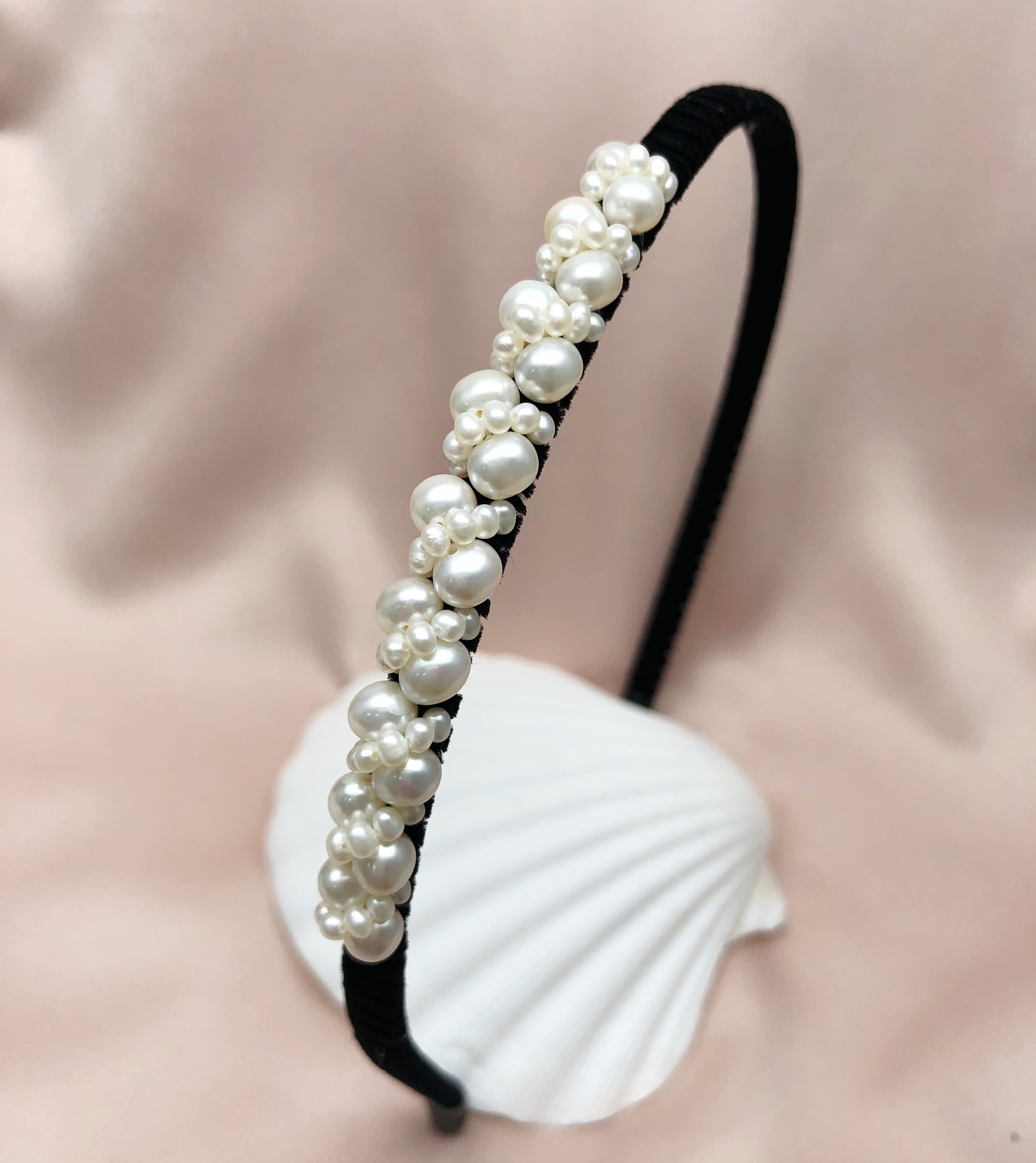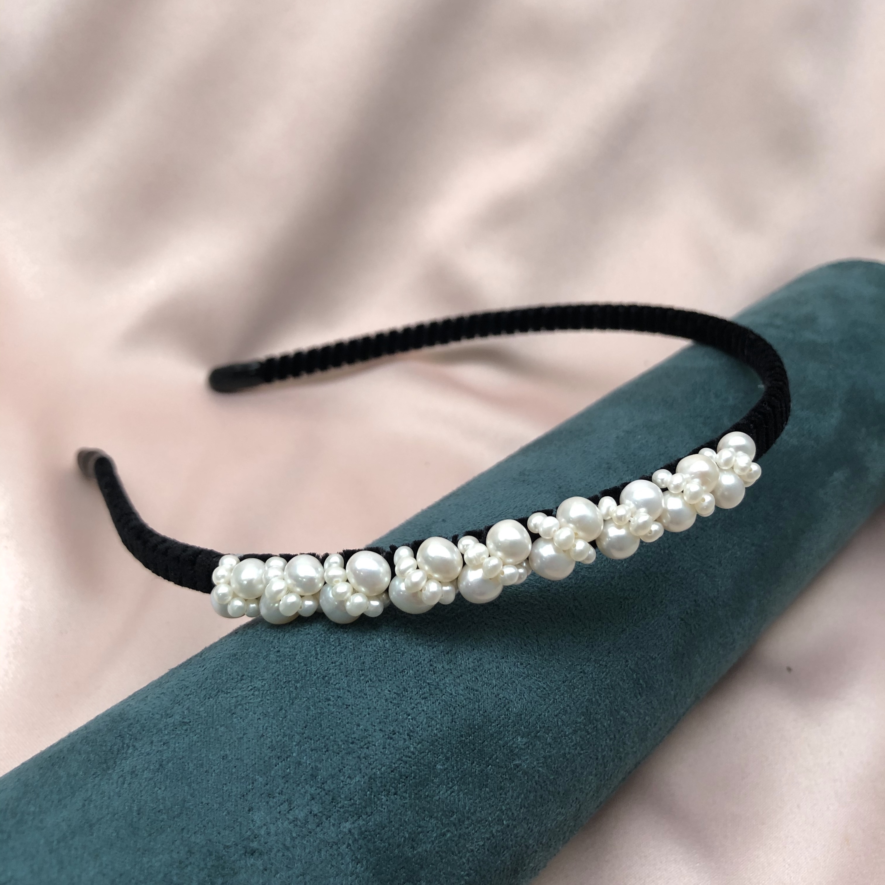 主推款:天然淡水珍珠手工製作/黑絨無痛感髮箍。