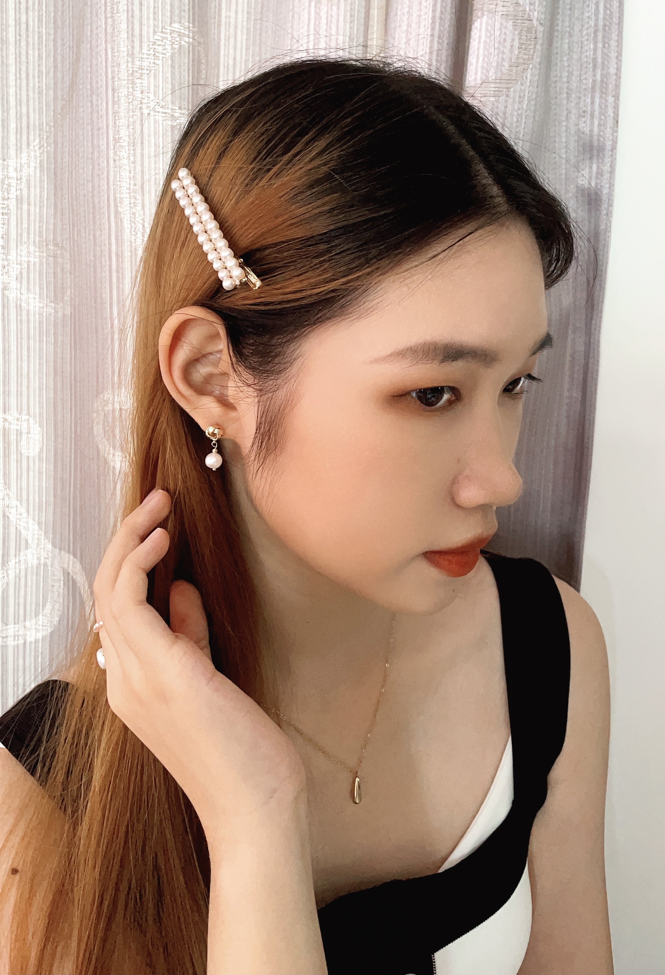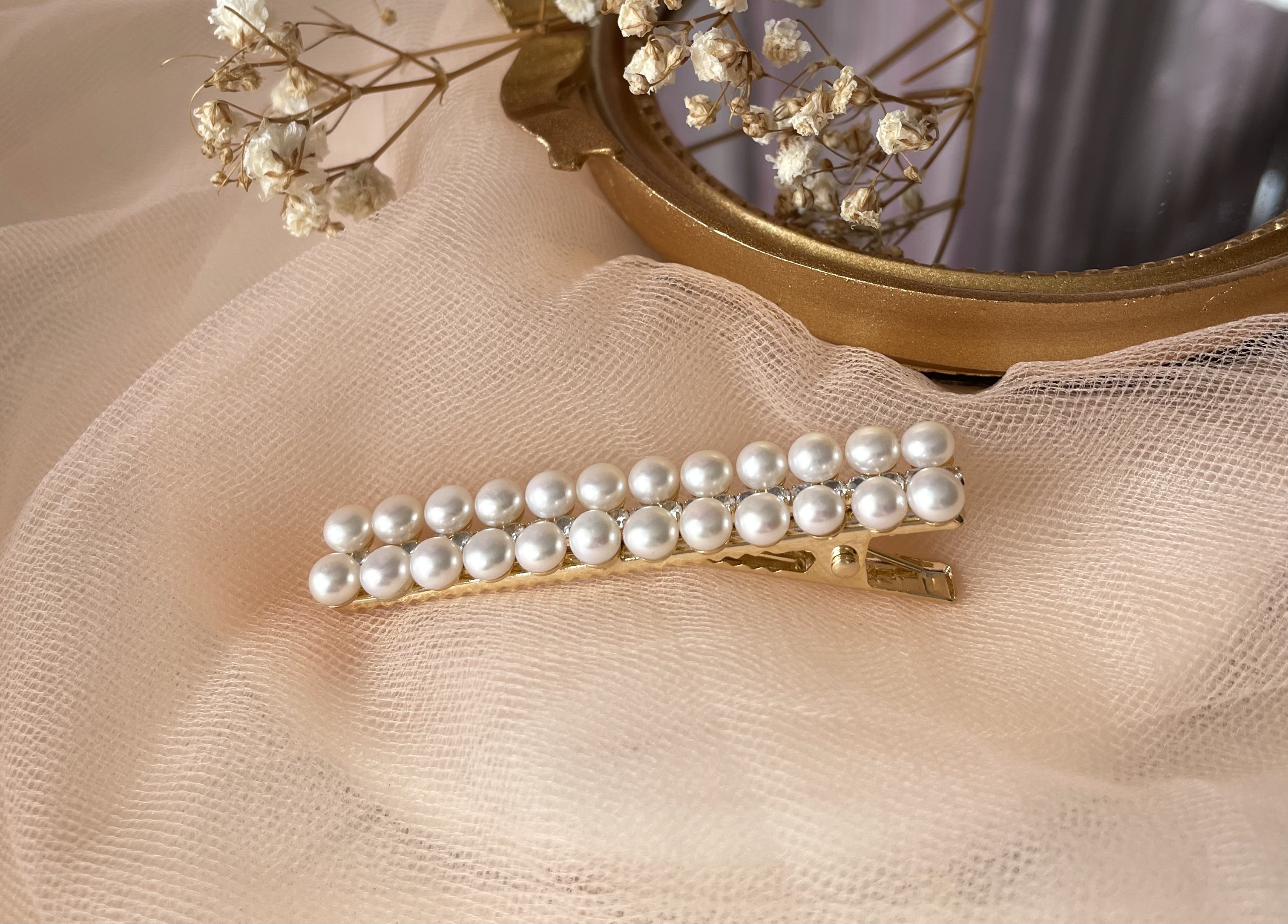 天然淡水珍珠鑲嵌,優質韓版厚鍍金髮夾