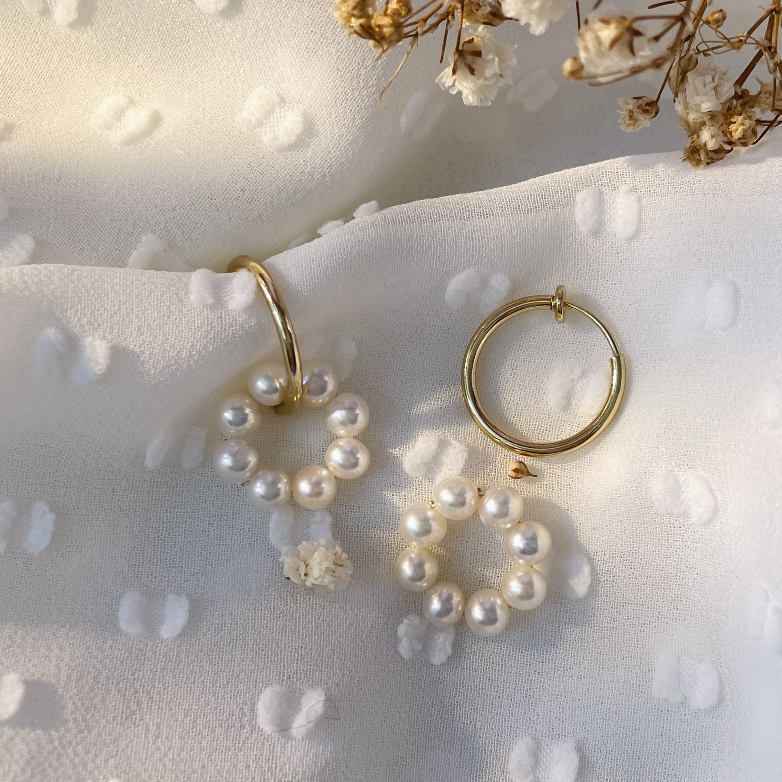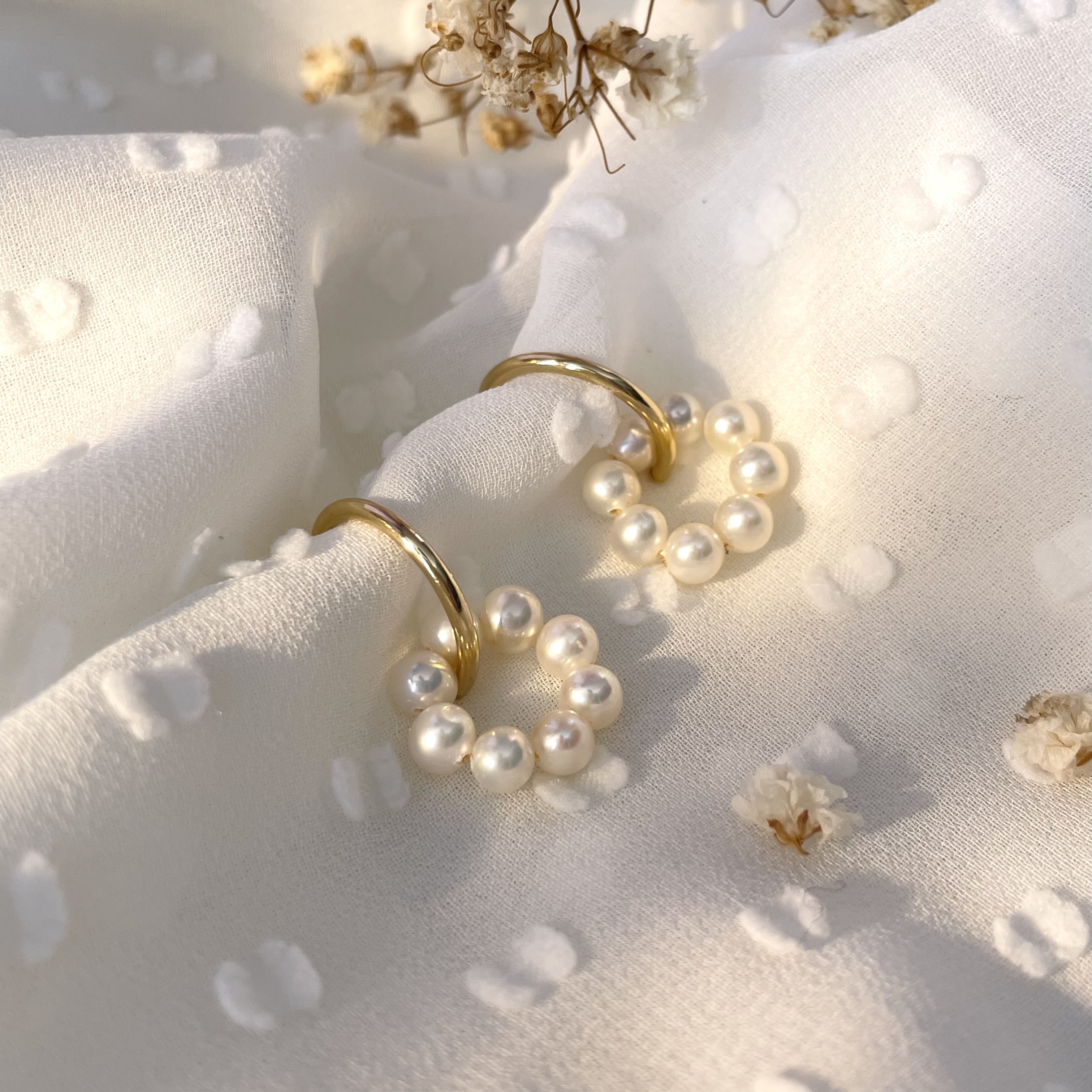 天然淡水珍珠圈圈,包金隱形夾式耳圈